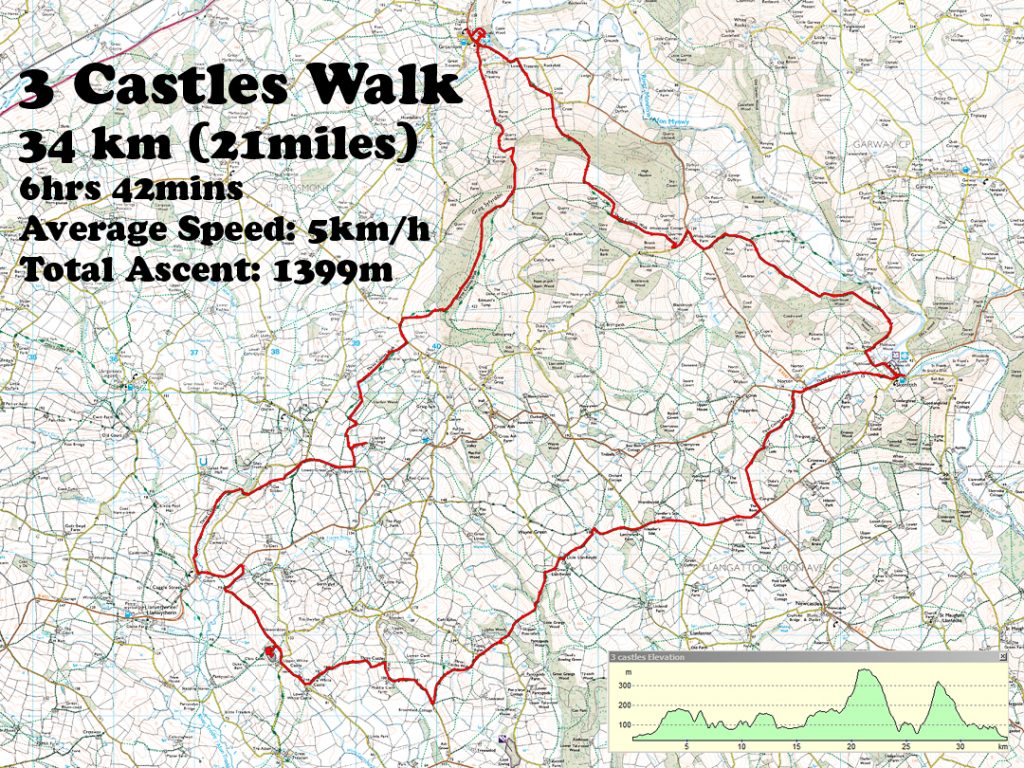 A 30km (20 miles) strenuous circular walk in the Monmouthshire Countryside starting and ending at Skenfrith Castle and visting White Castle and Grosmont Castle along the way